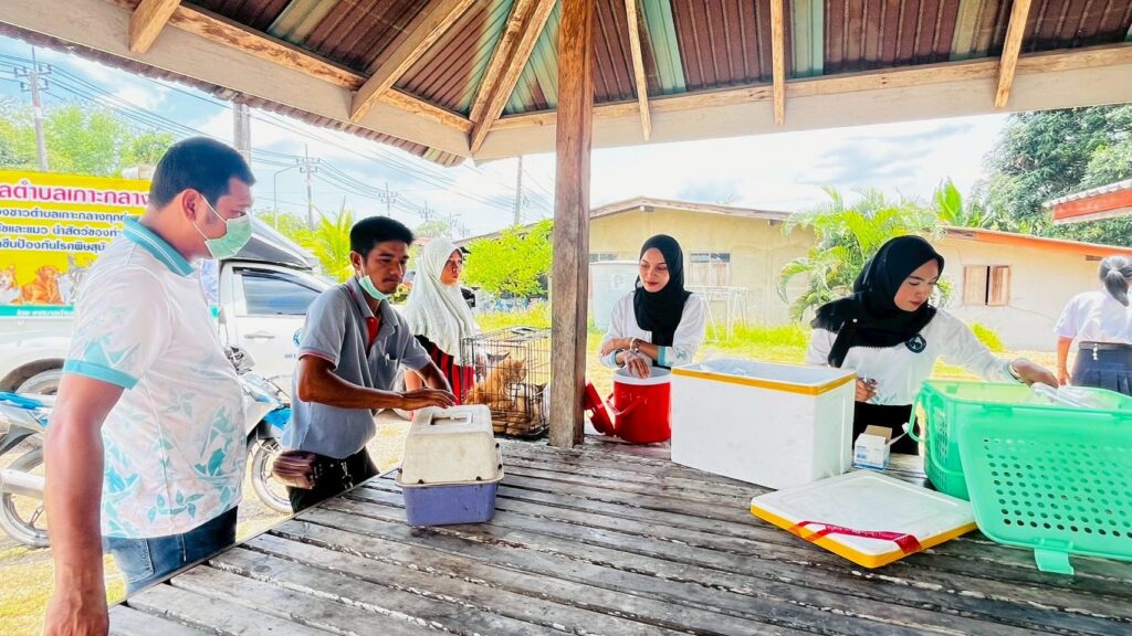 📝งานสาธารณสุขสำนักปลัดเทศบาลตำบลเกาะกลาง พร้อมเจ้าหน้าที่ ออกหน่วยให้บริการฉีดวัคซีนเพื่อป้องกันโรคพิษสุนัขบ้า ในพื้นที่ตำบลเกาะกลาง